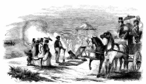 A case occurred a little more than a year ago on the Jersey shore not very far from Long Branch, in which this apparatus was used in serious earnest. It was in the middle of January and during a severe snow storm. The ship Ayrshire, with about two hundred passengers, had been driven upon the shore by the storm, and lay there stranded, the sea beating over her, and a surf so heavy rolling in, as made it impossible for any boat to reach her. It happened that one of the stations which we have described was near. The people on the shore assembled and brought out the apparatus. They fired the shot, taking aim so well that the line fell directly across the wreck. It was caught by the crew on board and the hawser was hauled off. The car was then attached, and in a short time, every one of the two hundred passengers, men, women, children, and even infants in their mothers' arms, were brought safely through the foaming surges, and landed at the station. The car which performed this service was considered as thenceforth fully entitled to an honorable discharge from active duty, and it now rests, in retirement and repose, though unconscious of its honors, in the Metallic Life-Boat Factory of Mr. Francis, at the Novelty Iron Works.