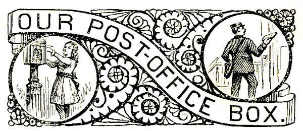 Lulu W.We shall not give a special department to fancy-work, but we shall now and then have short papers, like the one on page 14, telling how to make pretty things. Meanwhile perhaps some of our young correspondents will give you some new suggestions for fancy articles for your fair, for the success of which you have our best wishes.