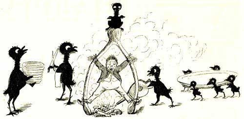 Now the sparrows may be too bold sometimes, but I do not think they are thieves, and it made me very angry to hear them called such a bad name. I screamed and struck my wings together so violently that I slipped from the branch, and was again swinging in the air by my chain.