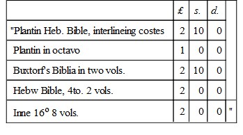 "Plantin" Bibles in 1600.—While looking over the "Stackhouse Library" (see "N. & Q.," Vol. viii., p. 327.), I observed on the fly-leaf of an Hebrew Bible, 1600 (A. 100 in catalogue), a short MS. memorandum, which I think worth preserving. It ran as follows: