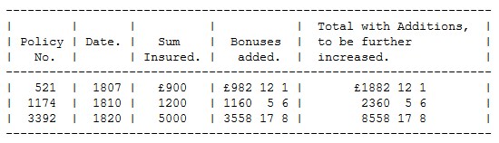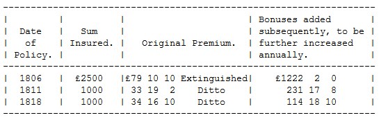 50. REGENT STREETCITY BRANCH: 2. ROYAL EXCHANGE BUILDINGSEstablished 1806Policy Holders' Capital, 1,192,818lAnnual Income, 150,000l.—Bonuses Declared, 743,000lClaims paid since the Establishment of the Office, 2,001,450lPresidentThe Right Honourable EARL GREYDirectorsThe Rev. James Sherman, ChairmanHenry Blencowe Churchill, Esq., Deputy-ChairmanHenry B. Alexander, Esq.