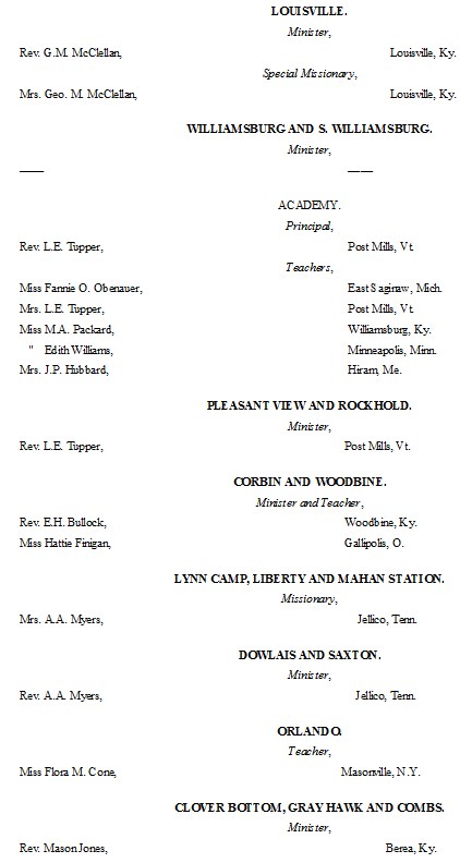 There is great interest in the work among the American Highlanders which the A.M.A. is pushing with such vigor. I spoke in a church near Boston recently, and, after the service, a young man, his eyes bright, his face flushed, hurried down the aisle and exclaimed, "I am a Kentuckian!" I had been telling some plain and rather painful truths concerning the people of Kentucky—the murders committed there; their lack of school privileges, etc. I thought this friend might question some of my statements, but I was delighted when he said: "I thank God that some one is ready to call attention to the terrible needs of my own State. I can't get people to believe me when I tell them of those needs. I was brought up on the edge of the mountains and know them well, and I do not believe there is any spot on earth more needy than that region of my own State." He accentuated his words by a generous gift to the Mountain Work of our Association.
