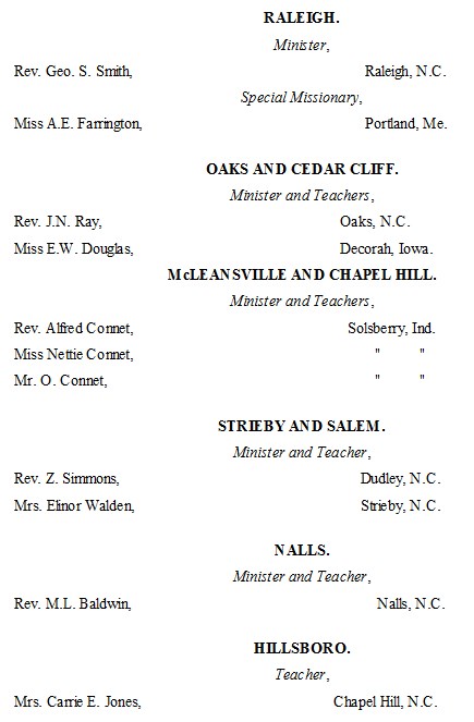 One message that comes from the work in North Carolina is of so much interest that it ought to have a place here. A teacher had been visiting her former field of labor, and she writes of this visit as follows: