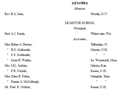Prof. Hatch was born January 16, 1852, was educated at Oberlin College and at the Union Theological Seminary in New York. He entered the service of this Association in 1876, and has occupied honorable positions in the schools at Montgomery, Ala., Tougaloo, Miss., and in Lexington, Ky. In every post of duty, Mr. Hatch has shown himself to be a faithful, conscientious and Christian worker, shrinking from no duty, winning the confidence of the teachers and pupils, and showing adequate results from his efficient labors. Mr. Hatch was reserved in manner, but courteous and affable, and a man of spotless integrity and of entire consecration to the work of the Master. It is a grief to record the death of such faithful men, but it is a consolation to know that their work was done and well done. The Christian life is not measured by its length, but by the discharge of the duties allotted by the Heavenly Father.