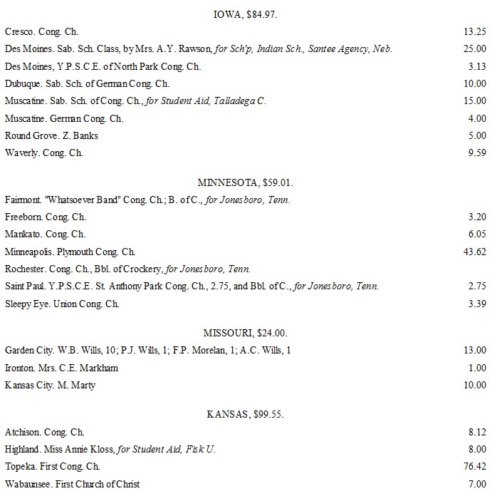 IOWAWoman's Home Missionary UnionPresidents—Mrs. T.O. Douglass, Grinnell.
