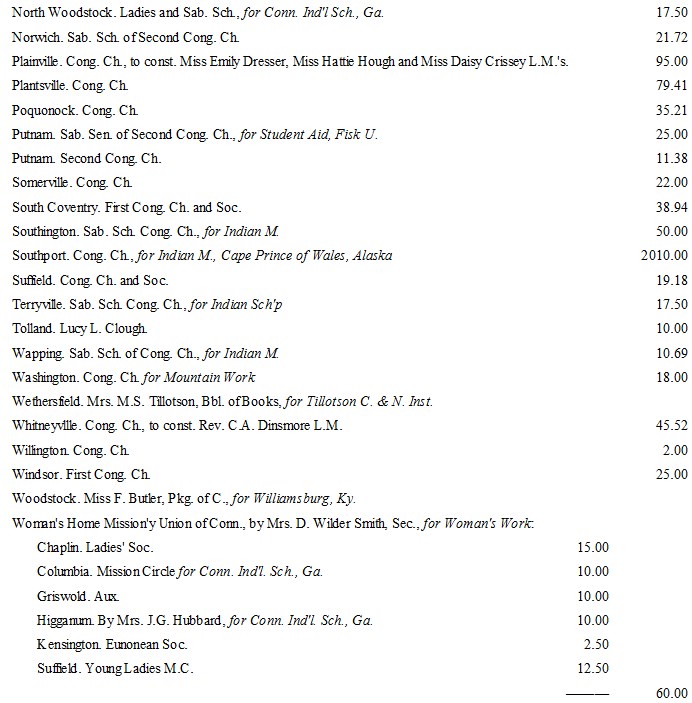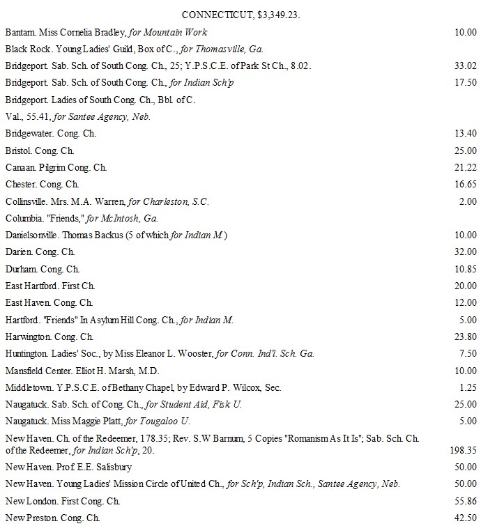 CONNECTICUTWoman's Home Missionary UnionPresident—Mrs. Francis B. Cooley, Hartford.