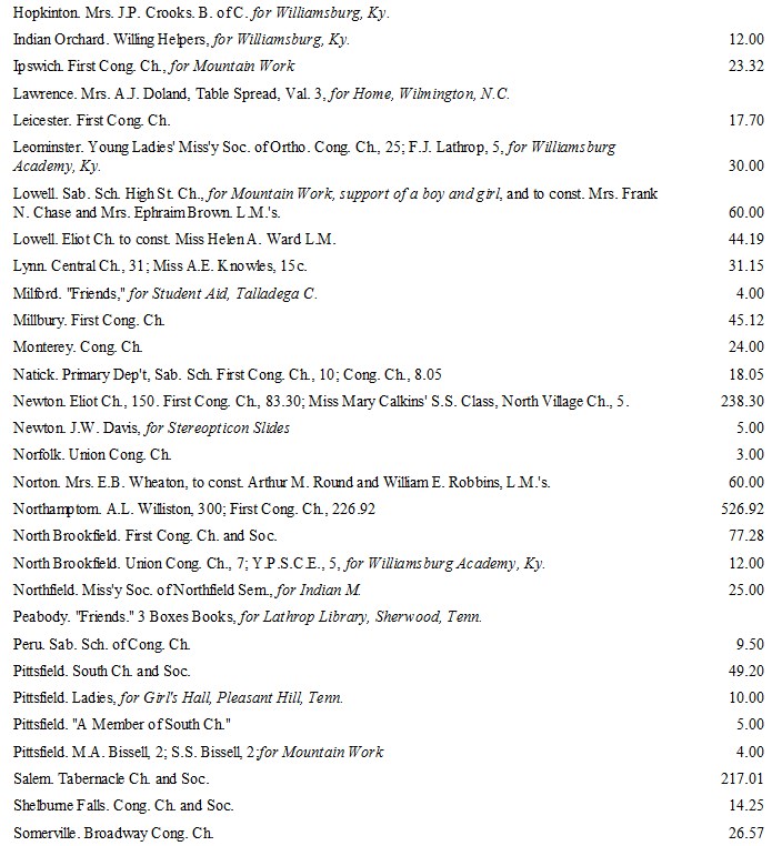 MASSACHUSETTS AND RHODE ISLAND 1Woman's Home Missionary AssociationPresident—Mrs. Alice Freeman Palmer, Cambridge, Mass.