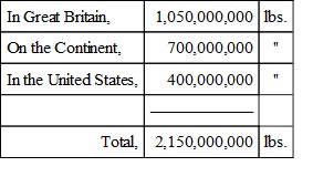 The second great measure of the Commission is to increase to five cents the tax on cotton, which has, since the close of our last financial year, begun to aid our revenue. The soil, climate, and seasons of our Southern States are peculiarly adapted to the culture of cotton. In India the fields are parched by the extreme heats of summer, and the staple shortened; in Algiers, the rains of autumn, which favor the young wheat, prevent the opening of the cotton-balls; but in the cotton States of the South, the moisture of the spring, the heats and showers of summer, and the dry weather and late frosts of autumn, all contribute to the full development of the cotton-plant; and the yield is twice or three times as great as in the cotton districts of the East. The staple, too, is much more valuable, and the yield and the quality of the staple are both improved by the application of guano. In 1859 the yield of the United States rose to 2,080,000,000 pounds, while the consumption of the civilized world was as follows:—