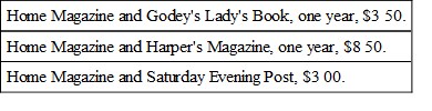 The aim of this work from the beginning, has been to unite in one periodical the attractions and excellencies of two classes of magazines—The Ladies', or Fashion Magazines, as they are called, and the literary monthlies; and so to blend the useful with the entertaining, as to please and benefit all classes of readers. The true "Home Magazine" must have its