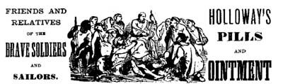 All who have friends and relatives in the Army or Navy should take especial care that they be amply supplied with these Pills and Ointment; and where the brave Soldiers and Sailors have neglected to provide themselves with them, no better present can be sent them by their friends. They have been proved to be the Soldier's never-failing-friend in the hour of need.