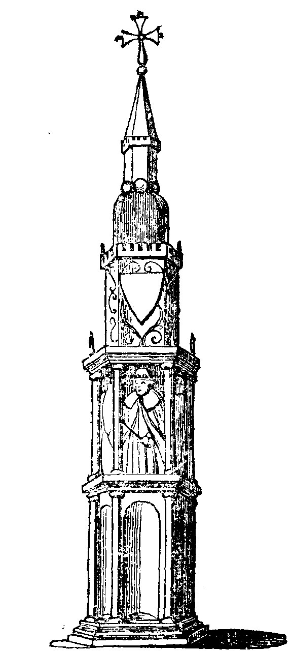 This is one of the celebrated memorials of the affection of Edward I. for his beloved Elinor, being the cross erected on the last spot on which the body rested in the way to Westminster Abbey, the place of sepulture. This and all the other crosses were built after the designs of Cavilini; and all of them were destroyed by the zeal of the Reformers.