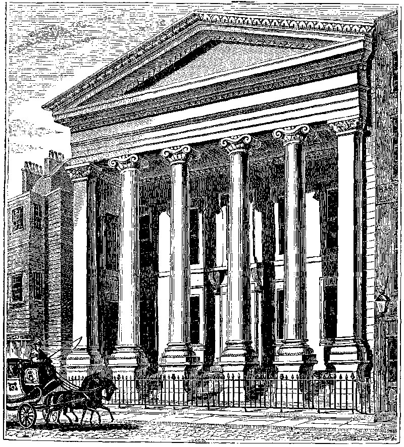 This handsome portico is situate on the west side of Chancery Lane. It represents, however, but a portion of the building, which extends thence into Bell Yard, where there is a similar entrance. The whole has been erected by Messrs. Lee and Sons, the builders of the new Post Office and the London University; whose contract for the present work is stated at 9,214l. The portion in our engraving is one of the finest structures of its kind in the metropolis. The bold yet chaste character of the Ionic columns, and the rich foliated moulding which decorates the pediment, as well as the soffit ceiling of the portico, must be greatly admired. We should regret this handsome structure being pent up in so narrow a street as Chancery Lane, did not the appropriateness of its situation promise advantages of greater importance than mere architectural display.