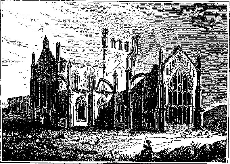 These venerable ruins stand upon the southern bank of the Tweed, in Roxburghshire. The domestic buildings of the monastery are entirely gone; but the remains of the church connected with, as seen in the above Engraving, are described by Mr. Chambers1 as "the finest specimen of Gothic architecture and Gothic sculpture of which this country (Scotland) can boast. By singular good fortune, Melrose is also one of the most entire, as it is the most beautiful, of all the ecclesiastical ruins scattered throughout this reformed land. To say that it is beautiful, is to say nothing. It is exquisitely—splendidly lovely. It is an object of infinite grace and immeasurable charm; it is fine in its general aspect and in its minutest details; it is a study—a glory." We confess ourselves delighted with Mr. Chambers's well-directed enthusiasm.