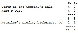 S.In reply to this note, the authenticity of which we do not question, we can only refer the writer to our distinct quotation from "the evidence of Mr. Mills, a Tea Broker, before the House of Lords.' In our 15th volume, No. 414, p. 104, the proportion of profit is differently stated from an article in the Quarterly Review. A pound of 11s.