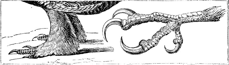 LEGS AND FEET of the ROCKY MOUNTAIN SPOTTED GROUSE, (Tetrao Franklinii, DOUGLAS,) which are thickly covered with long and hair-like feathers. The bird inhabits the valleys of the Rocky Mountains from the sources of the Missouri to those of the Mackenzie, and Mr. Douglas informed Dr. Richardson that it is sparingly seen on the elevated platforms which skirt the snowy peaks of Mount Hood, Mount St. Helens, and Mount Baker. He adds, "It runs over the shattered rocks, and among the brushwood with amazing speed, and only uses its wings as a last effort to escape."