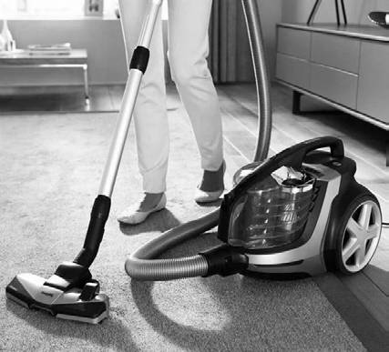 Как мы производим чистку ковров дома? Пылесос у нас стоит сам по себе, а мы, держа в руках длинный шланг и трубу, щёткой водим по полу. У них же пылесос таскают за ручку по ковру, двигатель находится непосредственно над ковром, и вращающиеся щётки помогают интенсивному всасыванию пыли.