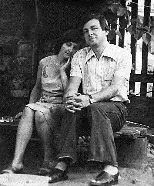 Елена и Владимир Солопановы во дворике дома номер 33 по ул. Демократии, г. Воронеж. Фото середины 70-х гг. ХХ в.