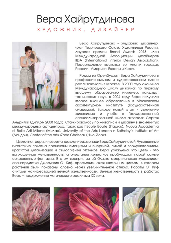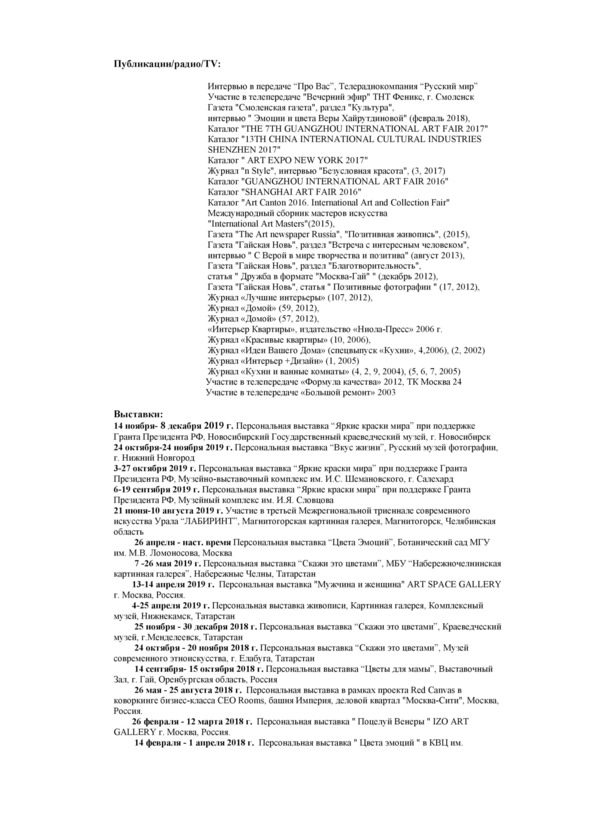 Коротко расскажите о себе. Буквально на полстраницы о том, кто вы, где родились, где учились. Ваше основное направление в творчестве, техника исполнения. Вероятно, некоторые работы находятся в частных коллекциях и, возможно, в разных городах России и/или за рубежом. Добавьте и эту информацию.