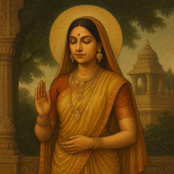 В тени великой дхармы она не возносилась, но хранила мир. Её слово было мягче ветра, но сильнее царского указа. Это история о женщине, чья добродетель стала основанием трона и светом в судьбе будущих правителей.