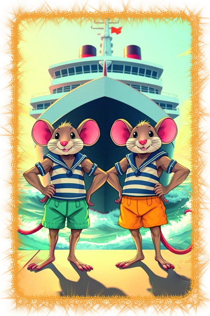 Как оказалось, Пик и Мик зашли попрощаться. Они устроились юнгами на лайнер. Это такой бо-о-ольшой корабль с двенадцатью палубами.