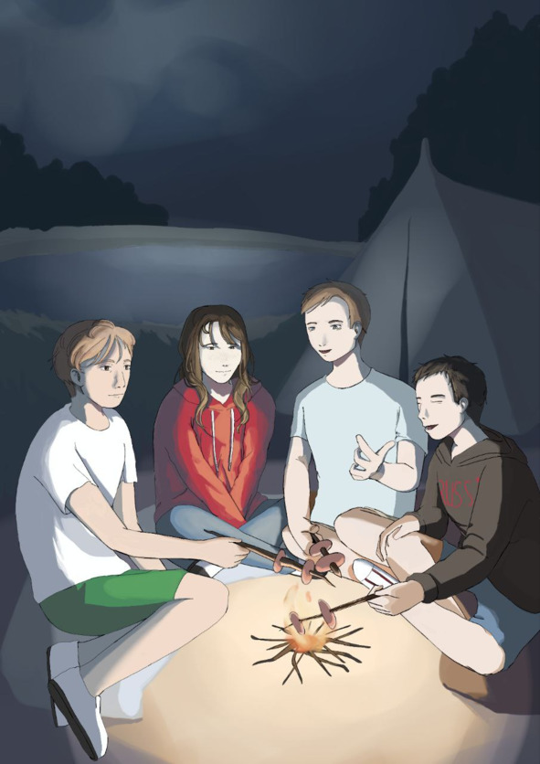 Сегодняшний вечер не обещал быть плохим, поэтому друзья могли спокойно остаться ещё на ночь. Ваня и Ника пошли в соседний лесок, чтобы набрать берёзовых палочек, а Данила и Женька сели чистить рыбу. До этого ребята ещё никогда не готовили подобное на костре, поэтому для них это было в новинку.