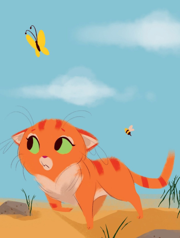 Вдруг, у неё забурчал живот, и кошечка вспомнила, что с ухода матери ничего не ела. Сейчас, когда она осталась одна, птицы не казались такими близкими и легко досягаемыми. Теперь они были неизмеримо далеко. Живот бурчал всё настойчивей. Солнышко прошла между кустов. Под одним из них сидела мышь. Кошечка ринулась к ней, а мышь увидев налётчицу, скрылась под корнями. Солнышко со всего разбегу врезалась в куст. Еле как выбравшись она поплелась дальше уже не предпринимая попыток кого-либо поймать.