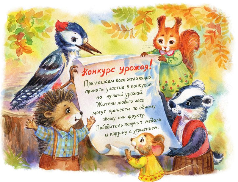 – Но как мы выберем, чью тыкву отнести на конкурс? – пискнула мышка Соня. – Каждый из нас же посадил по своему зёрнышку. А участвовать может только один овощ, а не шесть…
