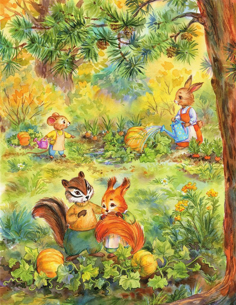 – А мне так хотелось, чтобы именно моя тыковка отправилась на конкурс, – белочка закрылась своим пушистым хвостом. Бурундучок положил ей лапку на плечо и задумался.