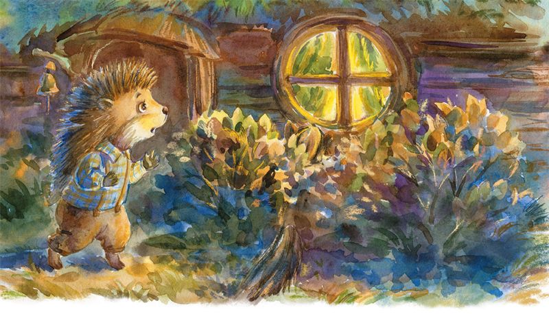 Месяца на беззвёздном небе было совсем не видно – ночь постепенно накрывала лесную поляну. В этот момент ёжик Сеня на носочках шагал к земляному дому, стараясь не шуршать опавшими листьями. Когда он уже готовился заглянуть в окно и крался мимо кустов, то неожиданно споткнулся обо что-то шерстяное и растянулся прямо перед дверью барсука.