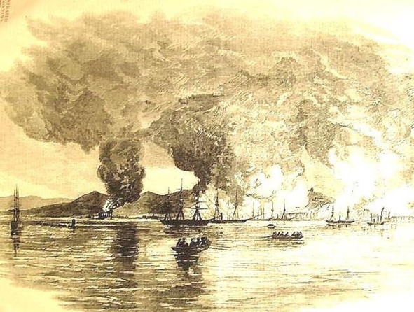 Спустя три часа неприятель удалился в море. С нашей стороны урон состоял из 7-ми убитых и 45 раненых нижних чинов; в укреплении взорван пороховой ящик».