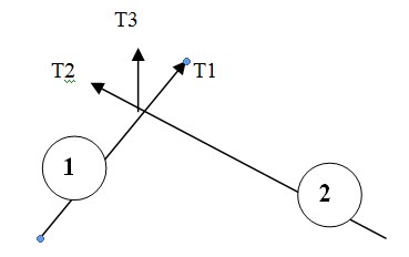 Рисунок 19. Встреча двух тел в космосе.Т1 – вектор движения тела 1. Т2 – вектор движения тела 2.
