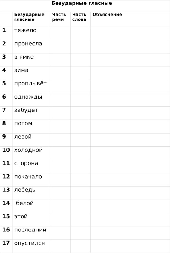 Правописание безударных гласных в корнях, приставках, суффиксах, окончаниях слов
