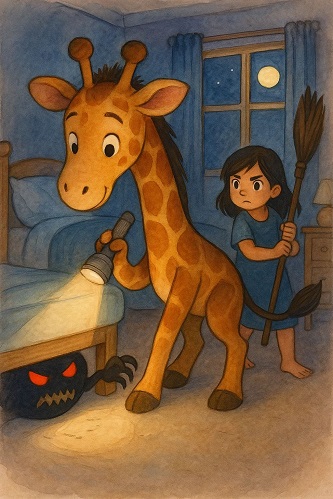 – Осмотр места завершён, – сообщил жирафчик. – Чудовища не обнаружены. Спи спокойно, Элла.