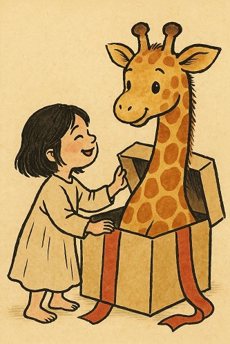 Из коробки выглянула голова. Нет, это была не просто голова, а мягкая, плюшевая мордочка с длинной шеей, мягкими рожками и огромными глазами с длинными ресничками. Элла ахнула. Это… не может быть! Жирафчик!