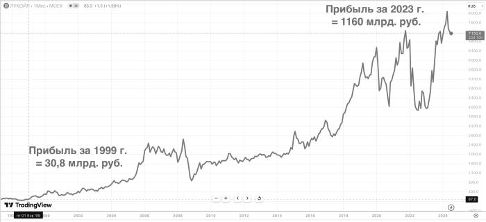 Посмотрите на график акций «Лукойла» – они выросли за 25 лет в 83 раза.
