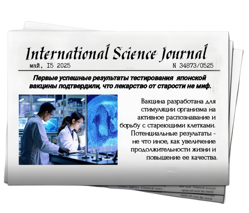 15.05.2024 г. International Science Journal: Первые успешные результаты тестирования японской вакцины подтвердили, что лекарство от старости не миф.