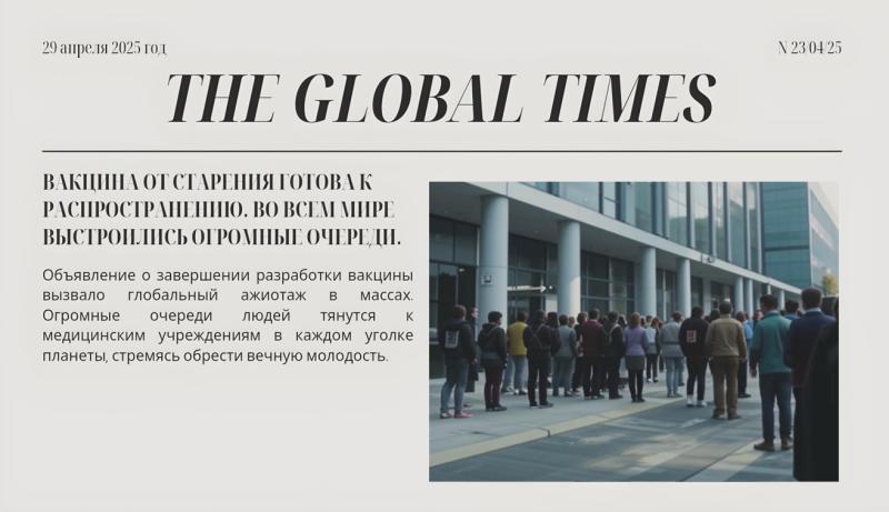 29.04.2025 г. The Global Times: Вакцина от старения готова к распространению. Во всем мире выстроились огромные очереди.