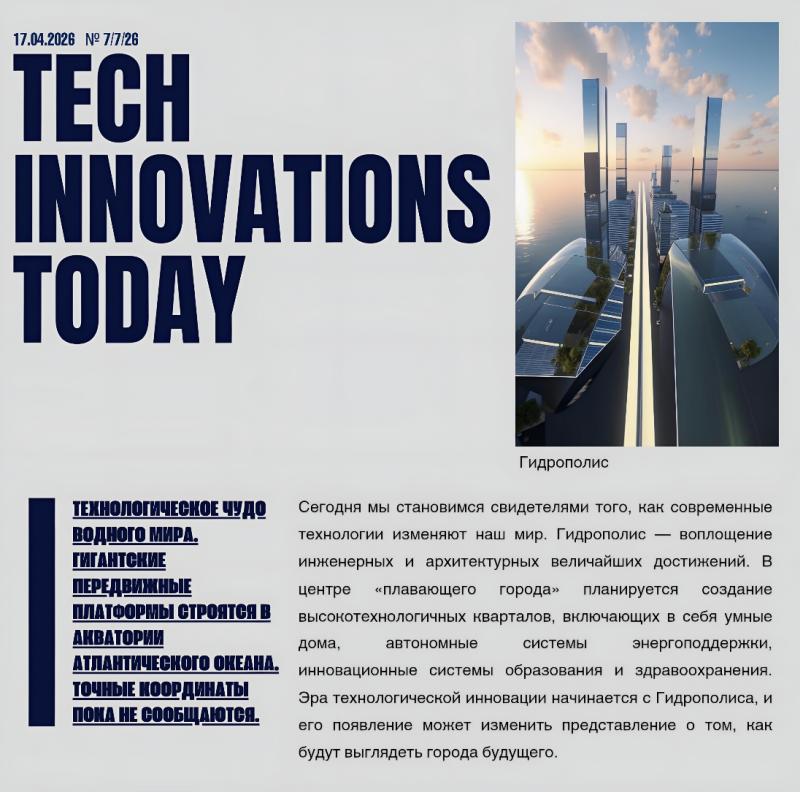 17.04.2026 г. Tech Innovations Today: Технологическое чудо водного мира. Гигантские передвижные платформы строятся в акватории Атлантического океана. Точные координаты пока не сообщаются.