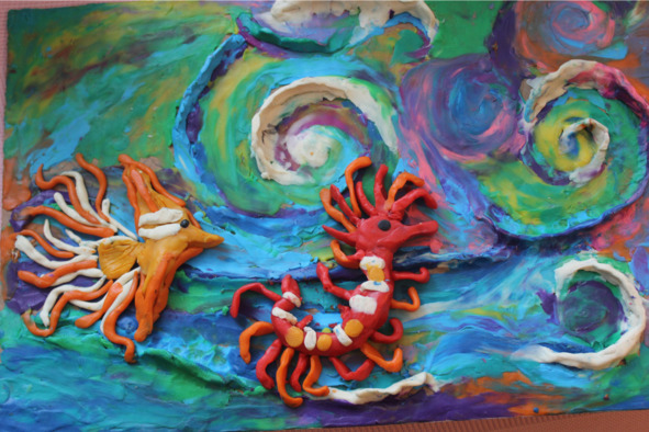 Однажды она захотела погулять у реки. Вдруг она заметила, что плывет какой-то маленький кристаллик. Решила лошадка доплыть до него и посмотреть, что это такое. Плыла-плыла, плыла. Вот он и рядом. Она дотронулась до него и… Превратилась в морскую лошадку с красивым хвостом – завитушкой. Оказалось, что кристаллик был волшебным. Так появились морские лошадки.