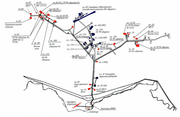 Ситуационная схема объектов космодрома Байконур