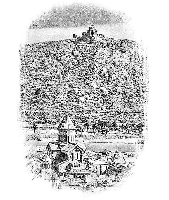 Между морей Большой Кавказ,Висят снега на тучах белых,Долины наполняют сказО Грузии в седых пределах.Шумят Арагва и Кура*,И виноград с росой на ветке,Лоза собрала сласть утра,Надев зелёную жилетку,А в небесах парит орёл,И зоркий взгляд скользит по склонам;Возвышенно стоит собор,Царица-дева на поклоне.Елейный дым и медный звон,Застыли витязи в молитве,И эхо раздаётся в тон —Мир и душа на горней битве…