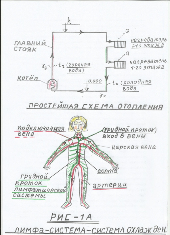 Вполне понятно, что удельные веса горячей и холодной жидкостей разные. На основании формулы становится понятно, что чем больше разность температур в лимфатической системе, тем больше гравитационное давление и соответственно скорость движения лимфы, и её расход, тем надёжней и система кровообращения. №4