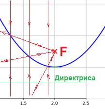 И наоборот: любой луч, выпущенный из фокуса, после отражения становится параллельным оси параболы.