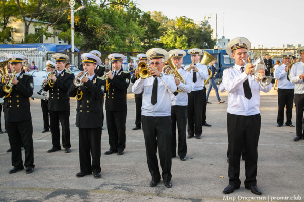 Присутствовали и представители командования вооружённых сил обеих стран. Военные оркестры по очереди играли музыку. Украинские музыканты в основном делали акцент на Джазе, наши на патриотических песнях военных эпох. Представитель командования украинских военно-морских сил Черноморского флота торжественно вручил капитану яхты шмат сала, а с российской стороны был подарен Андреевский флаг…»