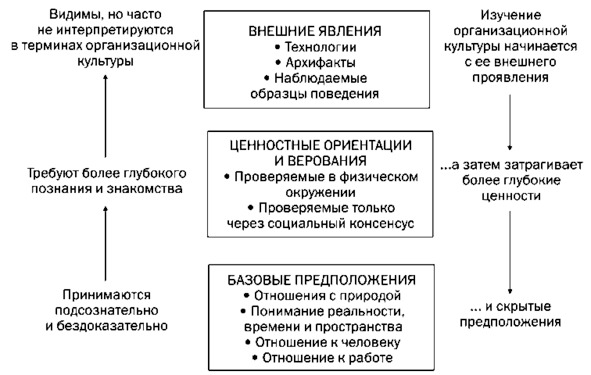 Согласно теории Э. Шейна, организационная культура любой компании делится на три уровня: