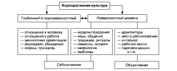Американский ученый Э. Шейн выделил три уровня корпоративной (организационной) культуры: поверхностный, внутренний и глубинный. Его модель является одной из самых распространенных и цитируемых в литературе.