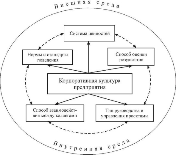 – Философские и идеологические представления, ценности, убеждения, верования, ожидания, нормы, правила, которые связывают организацию в единое целое и разделяются её членами.