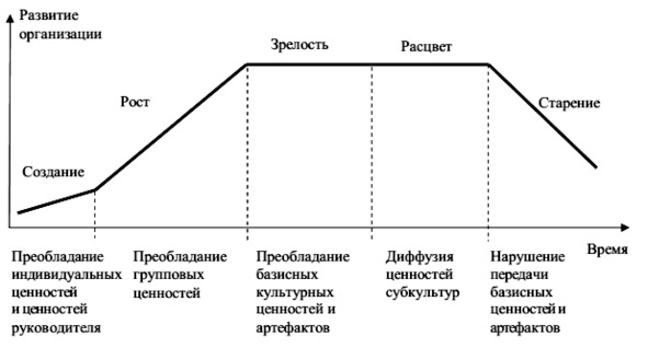 Параллельно протекают процессы формирования, развития и угасания организационной культуры.