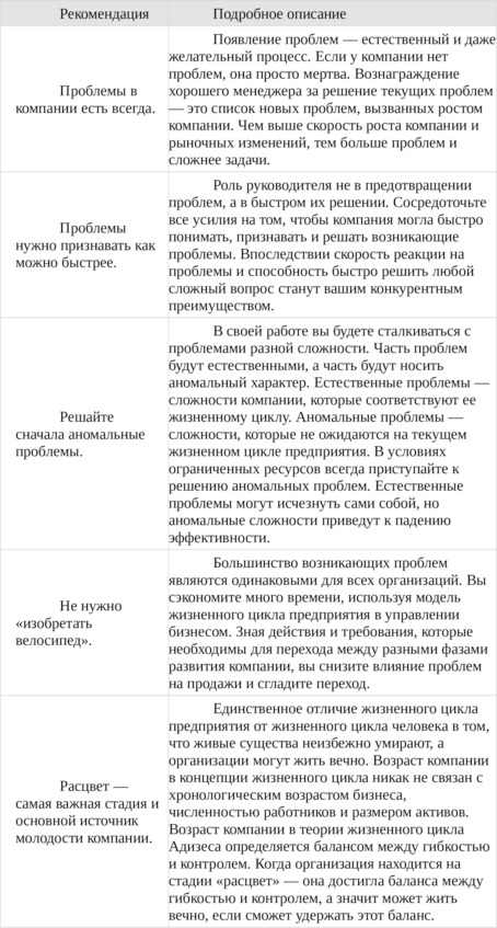 5.1.3 Рекомендации по работе с проблемами на этапах жизненного цикла организации