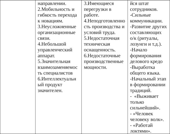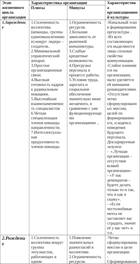 5.1.4 Характеристики организационной культуры на основных этапах жизненного цикла организации